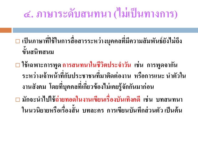ระดับภาษา และอิทธิพลของการใช้ภาษา ภาษาไทย พระบางวิทยา บทเรียนออนไลน์