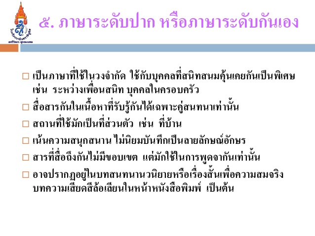 ระดับภาษา และอิทธิพลของการใช้ภาษา ภาษาไทย พระบางวิทยา บทเรียนออนไลน์